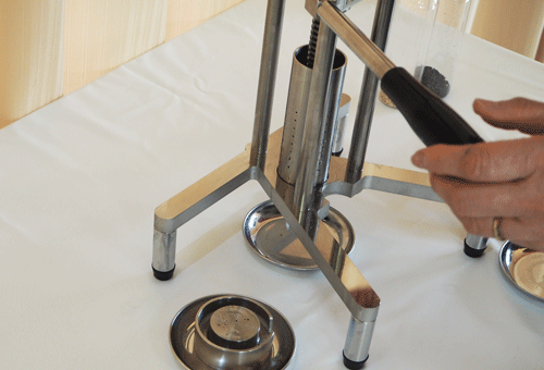 ④シリンダーの中に種子を入れます。クルミを入れています。