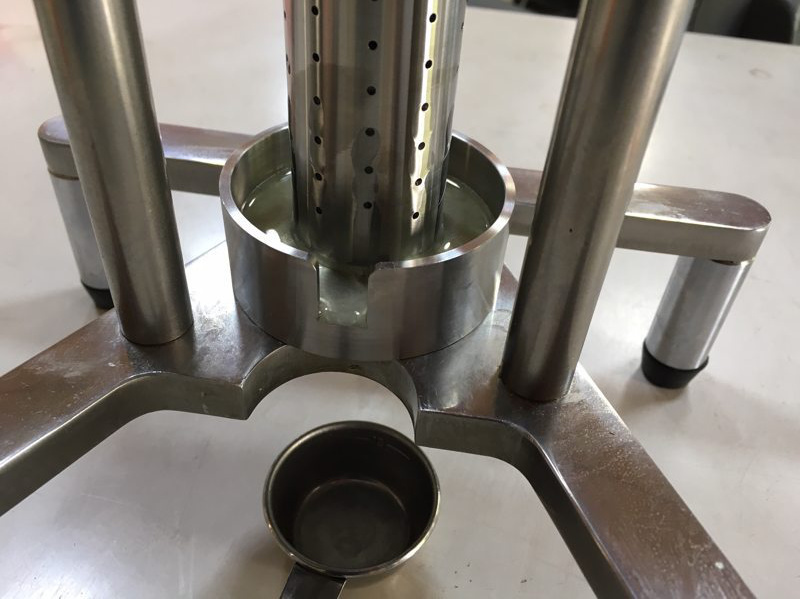 プレートの切り欠きから油が流れ落ちてきますので、それを受け皿で直接受けます。