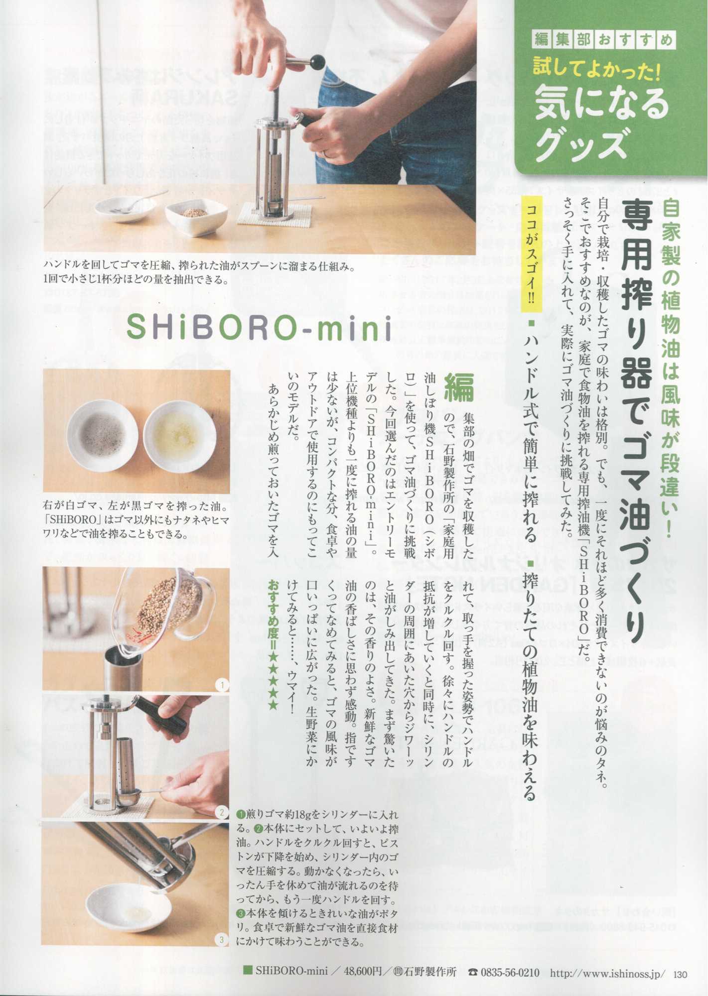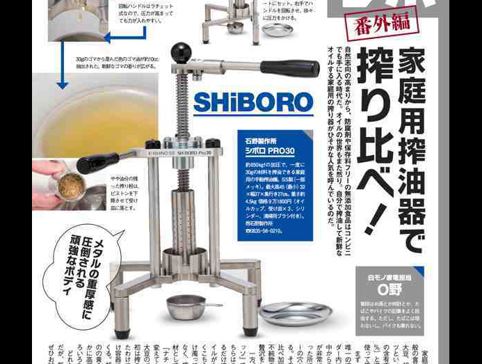 SHiBORO-Pro30 も家庭用搾油機としてご紹介していただいております。ありがとうございます。