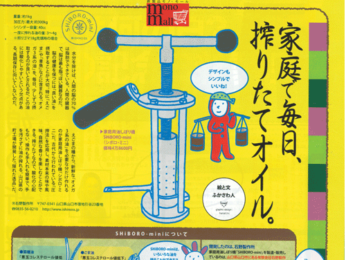 雑誌モノ・マガジンでは、7月16日号と次号で油特集を組まれています。植物油から機械油まで、油に関しての記事を書かれていらっしゃいます。