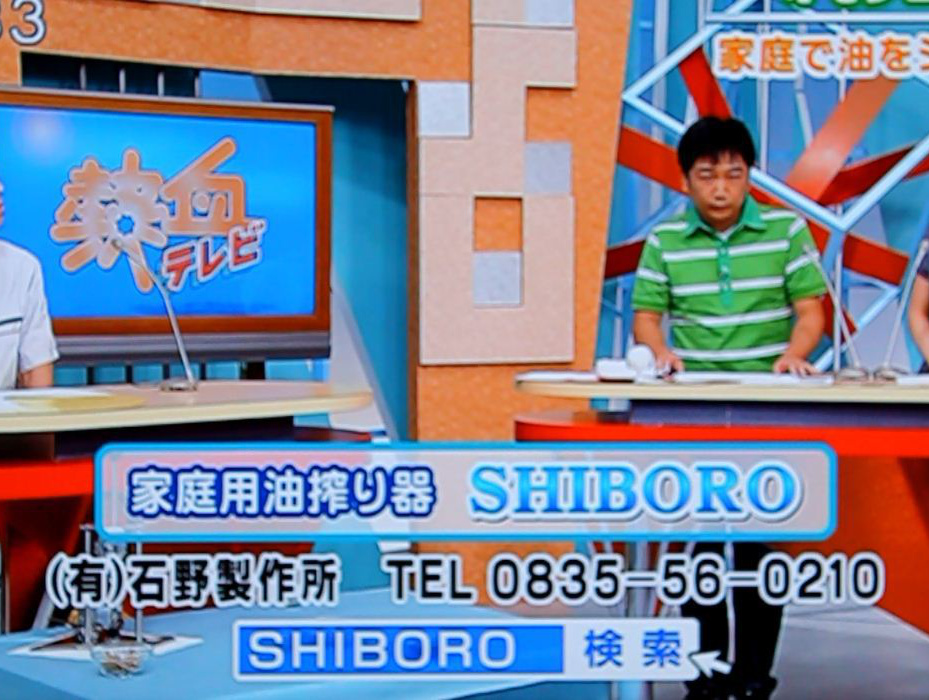 2017年12月2日に放送された、テレビ朝日「人生の楽園」で岐阜の山田さんが取り上げられていらっしゃいました。山田さんはお茶の実を油にして活用されています。SHiBORO-Pro65ご使用いただいておりまして、搾る様子が何度も放送されました。大変ありがたい。ホームページにも載っていまして、これまたありがたい。