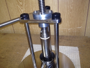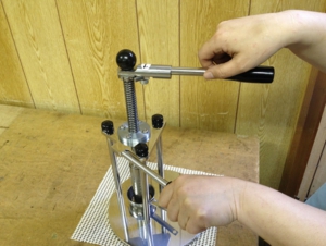 ハンドルをくるくる回し、ピストン下降させる