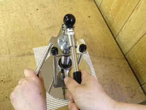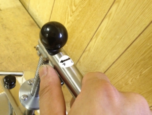 30秒~1分程度時間が経つと、油が抜け出た分だけ圧力が下がり、また搾れるようになります。また「かちゃかちゃ」とハンドルを左右に動かしピストンを下降させます。