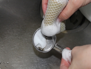 受け皿などを洗う