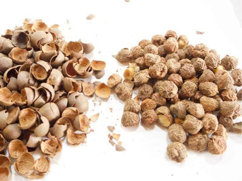 殻ごとミルで粉砕して、殻を取り除かずそのままでも搾れます。殻を取り除いて、粉砕しないでも搾れました。色々と試してみるのも良さそうです。
