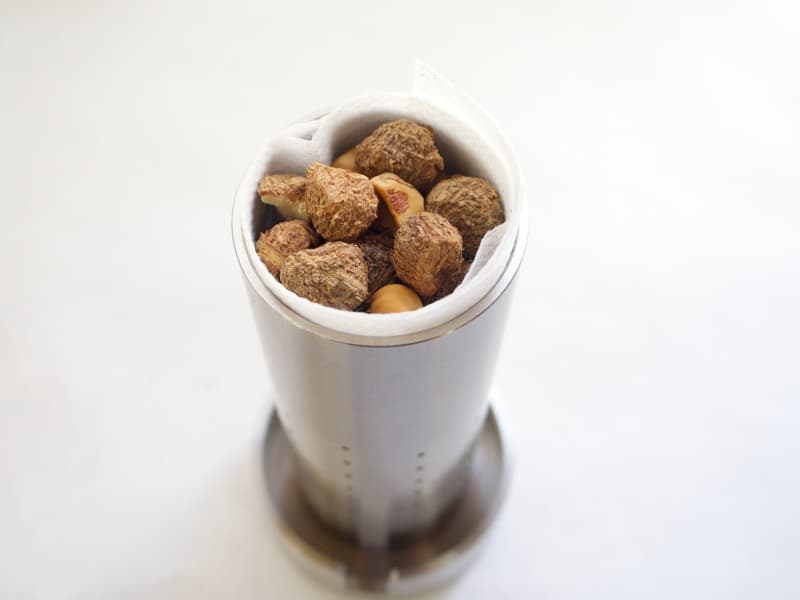 フィルターをシリンダーにセットし、お茶の実を充填します。